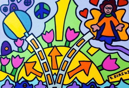 Dos Caminos (2003) by Tamara Diaz (18 x 24) Acrylic paint (Donation to CHISPA)