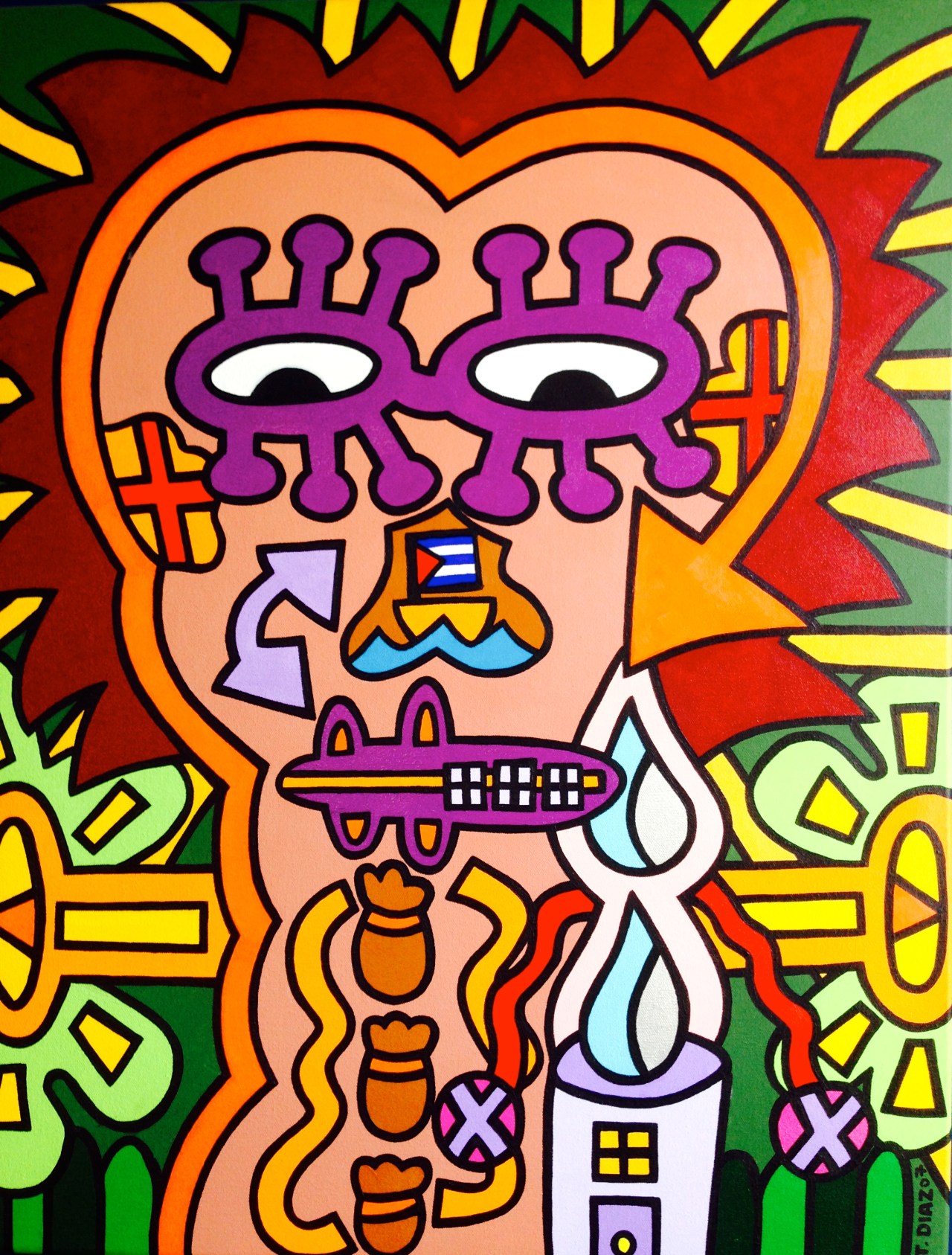 Mi Cuba, Pienso Mucho En Ti/Mi Alma 1-2007 (30 x 24) Acrylic paint on Canvas. This piece contains symbols which address a theme of distributing and sharing resources Date: August 22, 2014Author: Tamaradiazart Category: 2007, Acrylic Paintings Post navigation ← El Leon/The Lion (2002) by Tamara Diaz. This piece has sparkly pieces which were glued on to create the border. Te Amo (2013) by Tamara Diaz. Colored Pencil on Paper → Share this: Click to share on X (Opens in new window) X Click to share on Facebook (Opens in new window) Facebook Like Loading... Related