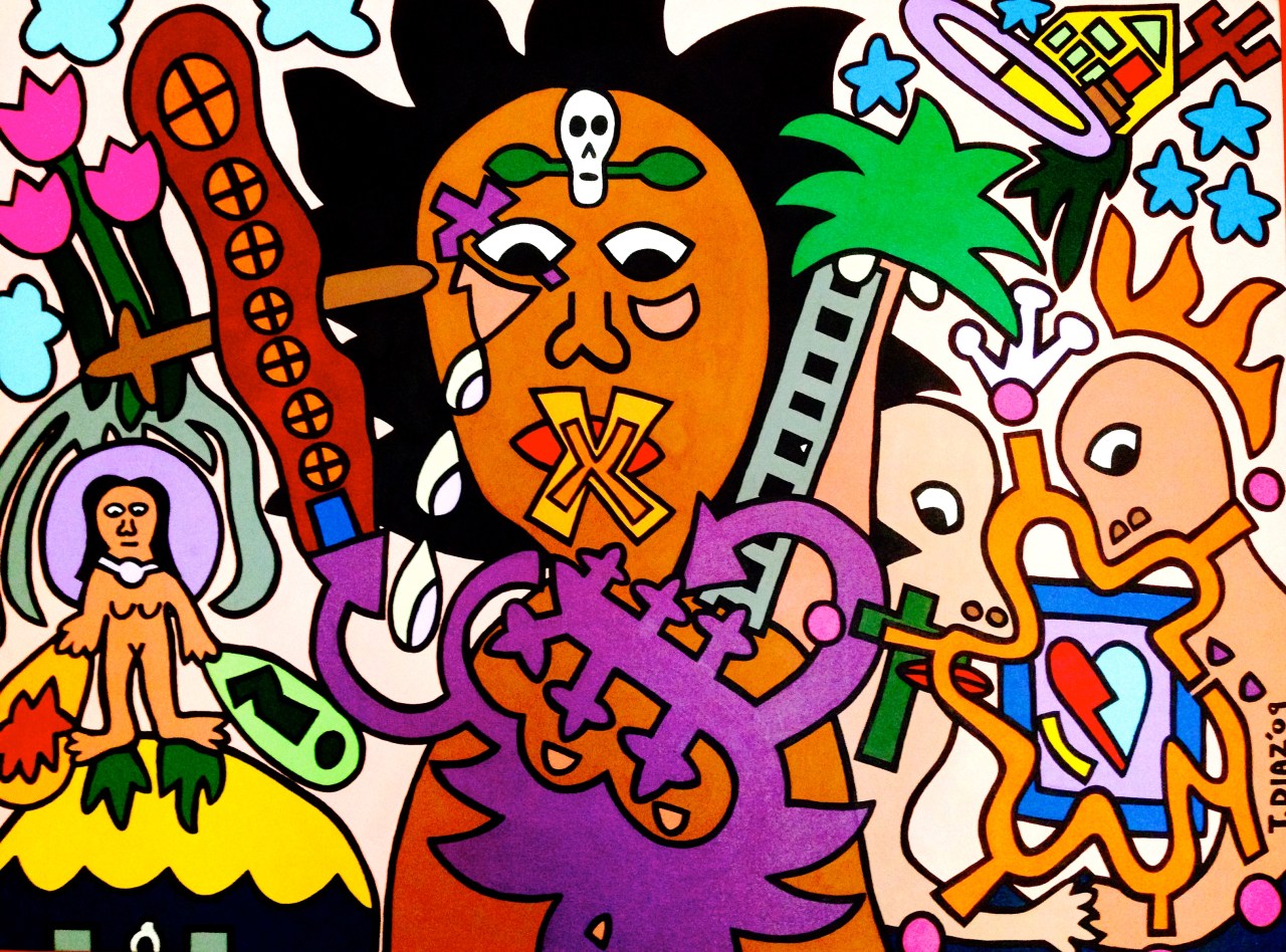 Jammed Up (2009) by Tamara Diaz (30×40) Acrylic Paint on Canvas. All of a sudden, I forgot how to communicate verbally. All I could do was paint. The words or tears would not come out. Date: August 27, 2014Author: Tamaradiazart Category: 2009, Acrylic Paintings Post navigation ← El Mono (2002) by Tamara Diaz, Acrylic Paint on Canvas and owned by the artist: Nilton Cardenas Palma by Tamara Diaz (2010) Colored Pencil Drawing on Paper → Share this: Click to share on X (Opens in new window) X Click to share on Facebook (Opens in new window) Facebook Like Loading... Related