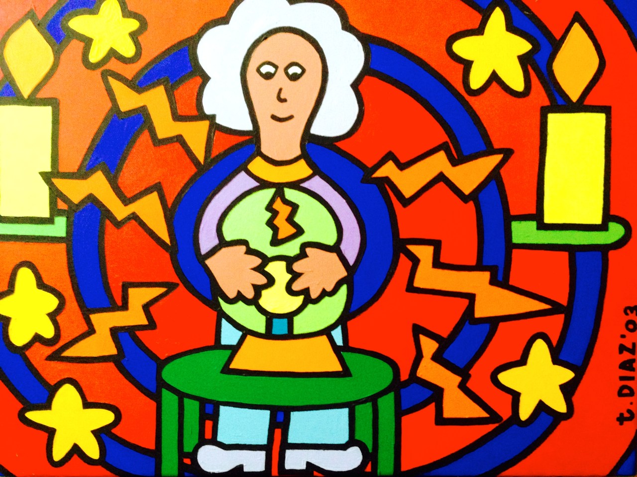Crystal Ball (2003) by Tamara Diaz (18 x24) Date: August 31, 2014Author: Tamaradiazart Category: 2003, Acrylic Paintings Post navigation ← El Dolor/Pain (2007) by Tamara Diaz (30×40) Acrylic Paint on Canvas Colorful Chaos (2003) by Tamara Diaz (24×30) Acrylic Paint on Canvas → Share this: Click to share on X (Opens in new window) X Click to share on Facebook (Opens in new window) Facebook Like Loading... Related