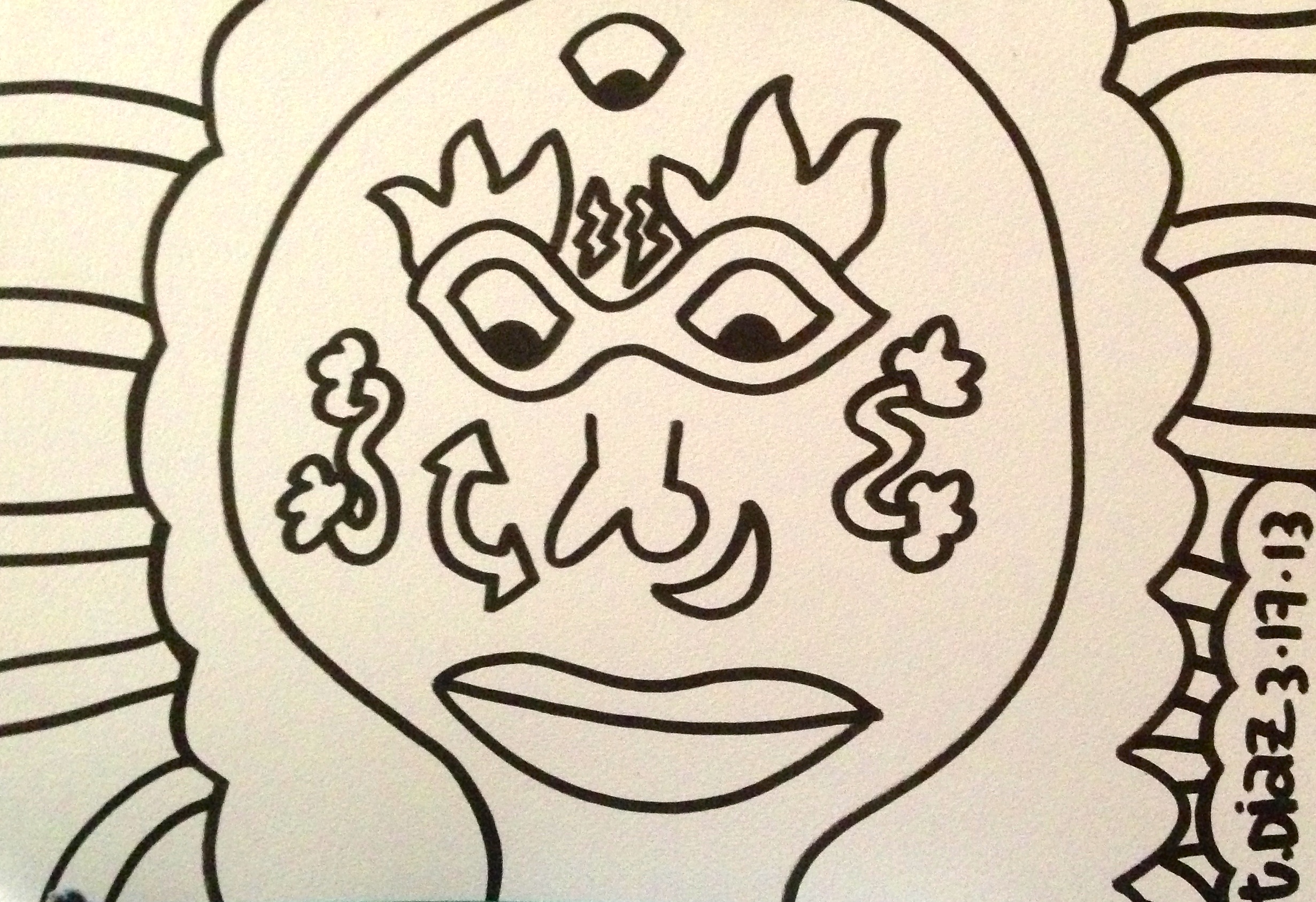El Enojo/Anger (2013) by Tamara Diaz. Black Water Based ink on Paper. This drawing is in a journal which was lost in Providence. Date: September 1, 2014Author: Tamaradiazart Category: 2013, Ink on Paper Drawings Post navigation ← Un Beso (2011) by Tamara Diaz. This is part of the Recycled Art Project and this one in particular is dedicated to a lover who had forgotten her earring at my house. Each day I would send her love art with her earring. Sweet, Smart, Loving, Good, Compassion (2008) by Tamara Diaz. Acrylic Paint on Paper. Gift for Pam Padula → Share this: Click to share on X (Opens in new window) X Click to share on Facebook (Opens in new window) Facebook Like Loading... Related