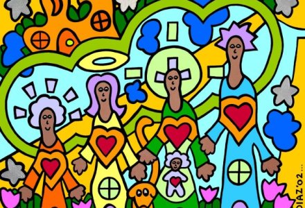 Angels (2002) by Tamara Diaz (19.5 x 23 ¼) Acrylic paint on wooden door