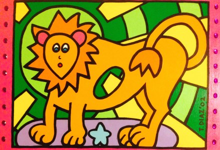 El Leon (2002) by Tamara Diaz (24×30) Acrylic Paint and Mixed Media on Canvas
