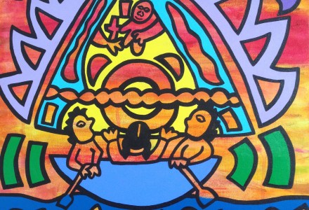 Dos Caminos (2003) by Tamara Diaz (18 x 24) Acrylic paint (Donation to CHISPA)